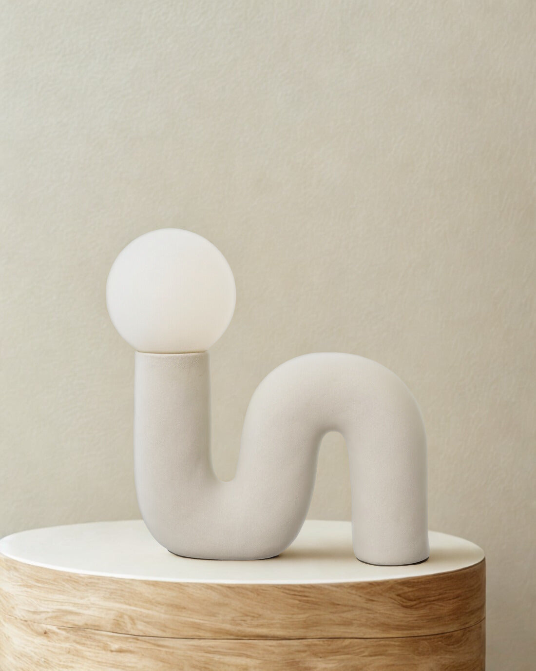 Mahai-lanpara hau metalezko marko beltz batekin eta haritzezko pieza dotore batekin egina dago, diseinu sotil eta minimalista sortuz, egongela zein logelarako aproposa.