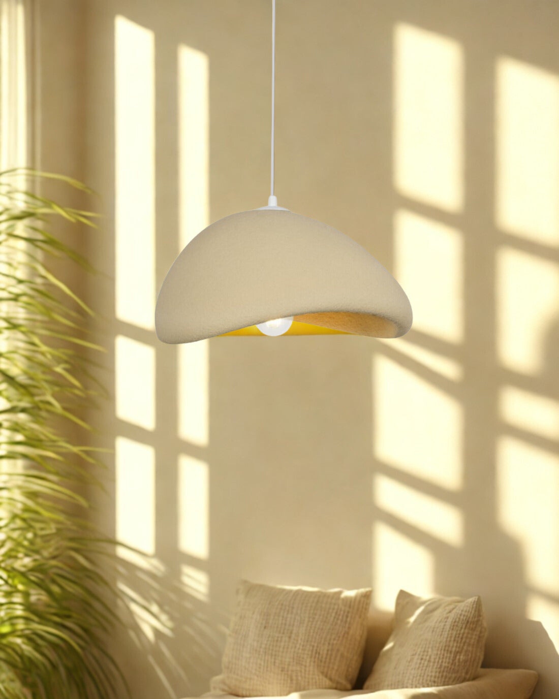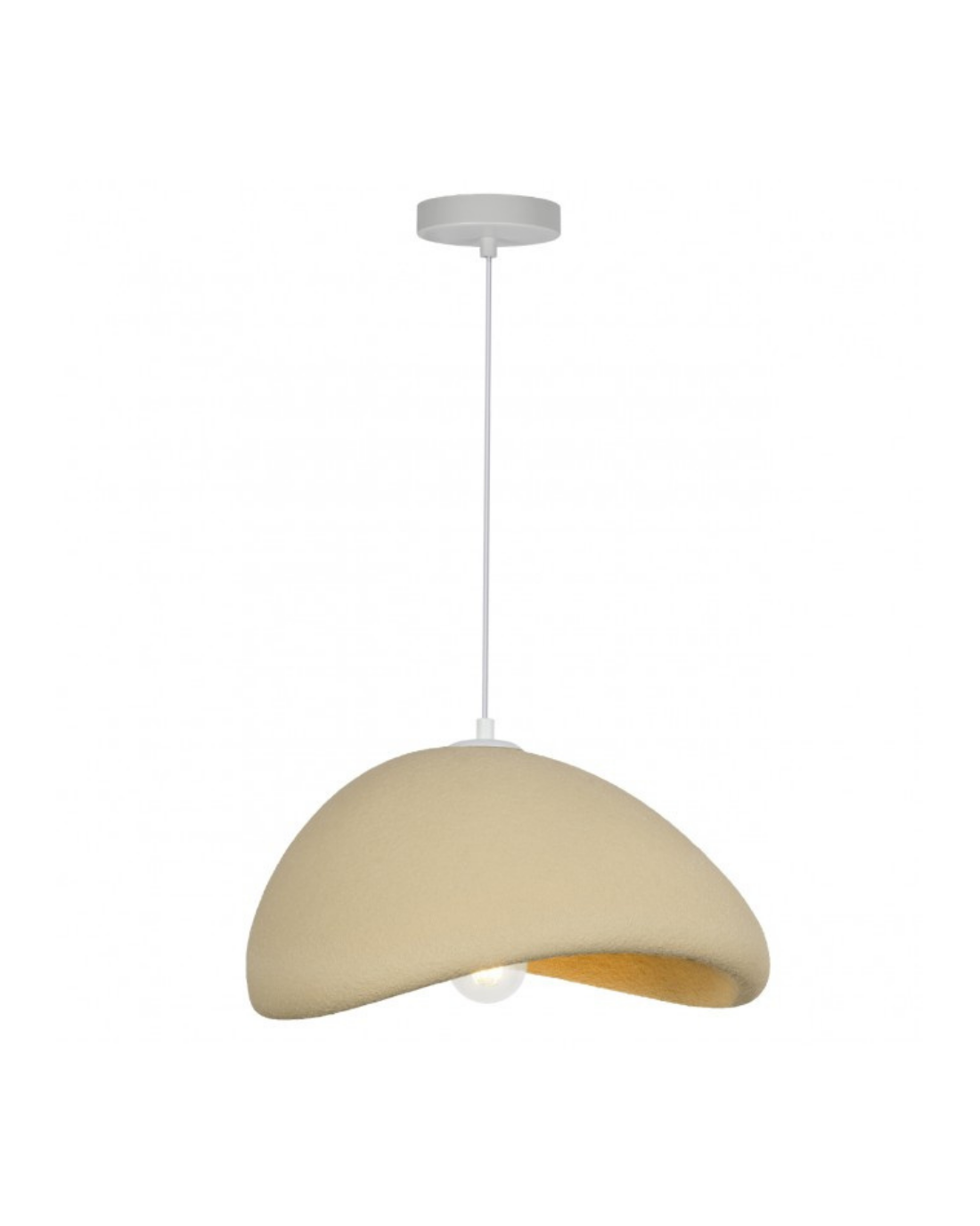 La lámpara de techo Ona destaca por su diseño orgánico y envolvente, inspirado en formas suaves y naturales que aportan calidez y personalidad al espacio. Su pantalla de líneas curvas y acabado texturizado crea un efecto visual elegante y moderno, perfecto para ambientes contemporáneos, mediterráneos o minimalistas.