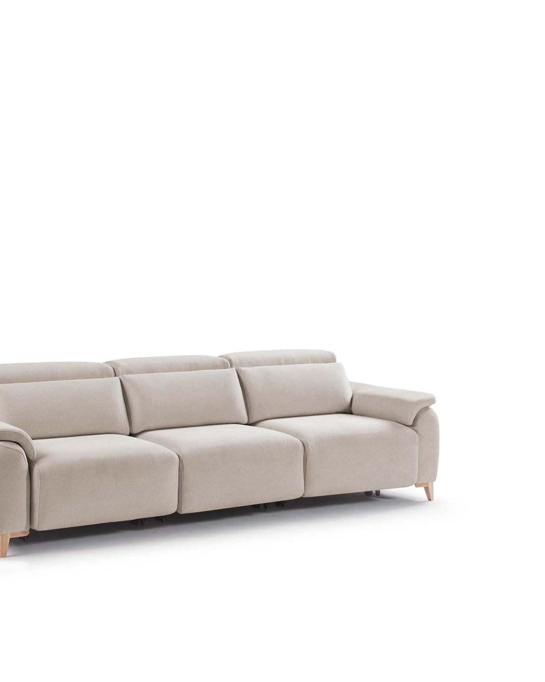 Este sofá por defecto tendrá en todos sus módulos de asiento el mecanismo deslizante de carro a suelo, tendremos la opción de que estos sean deslizantes de carro a suelo con motor eléctrico y botonera.